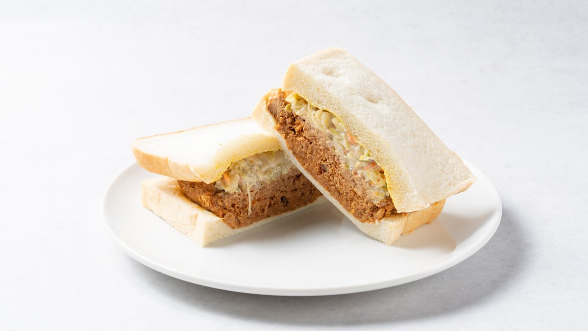 柔らかくホロホロになるまで煮込んだ道産ポークのモモ肉を細かく裂いて、スパイシーなコールスローと一緒に挟んだ、アメリカ南部の定番サンドイッチです。