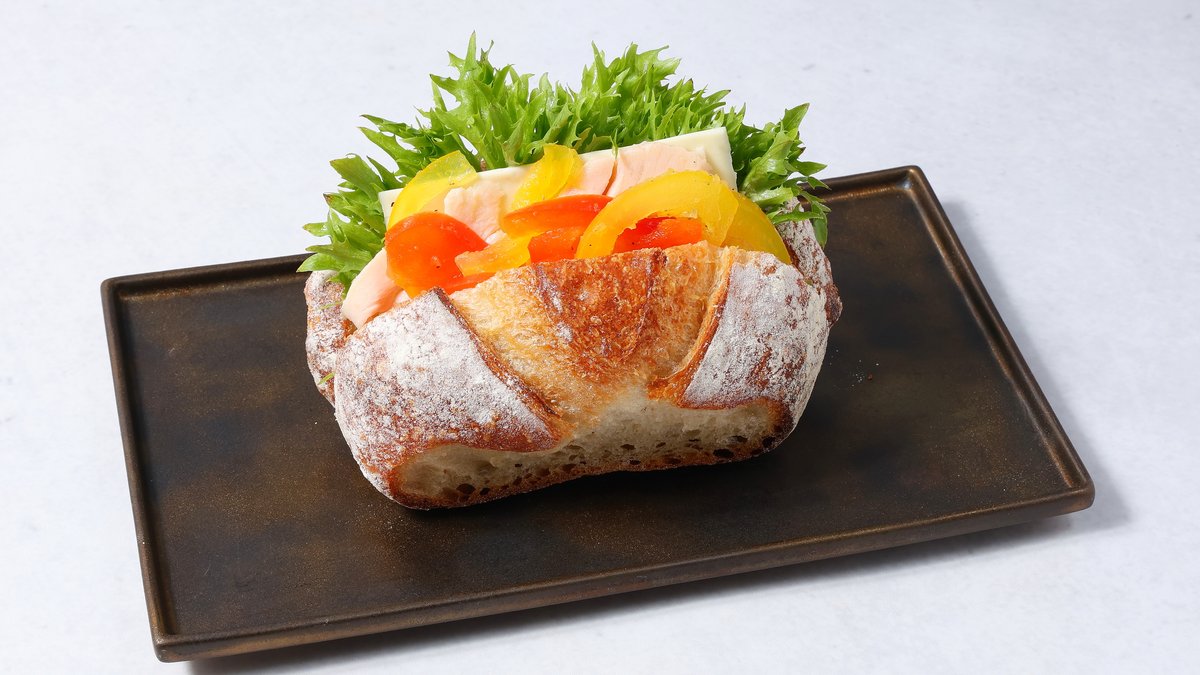 外はカリッと中はもちもちとした食感のリュスティックです。 A Rustique with a crispy outside and chewy inside.