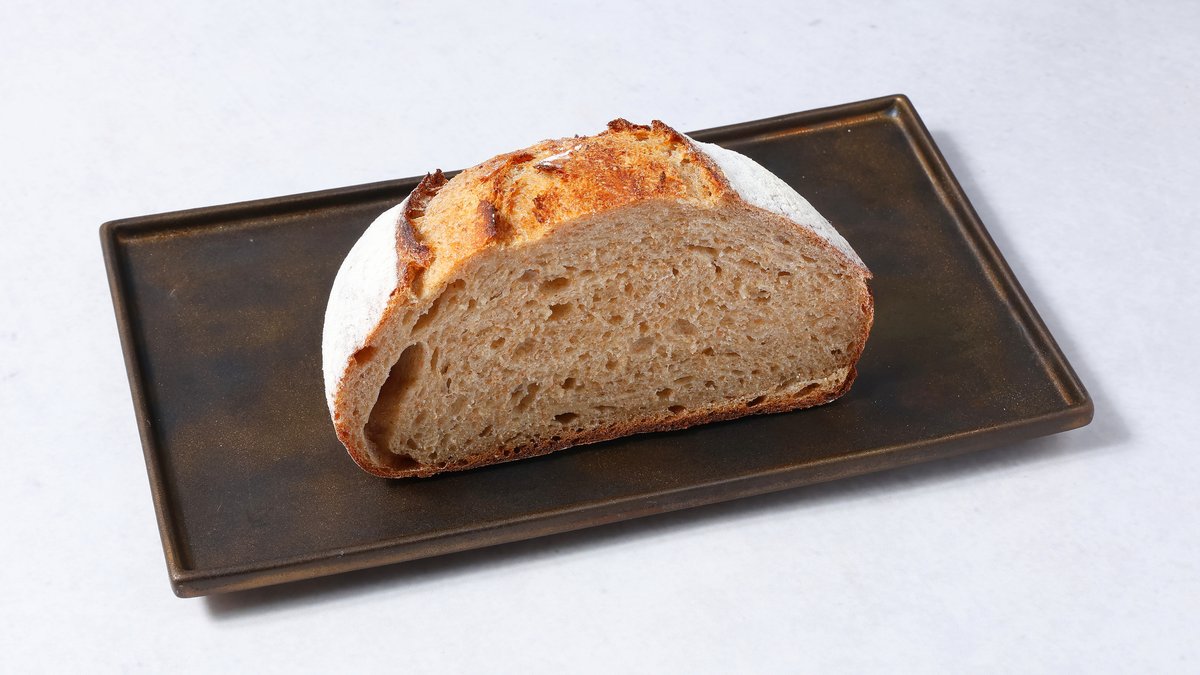 素朴な味わいと香ばしいクラストが特徴のカンパーニュです。 A Campagne featuring a rustic flavor and savory crust.