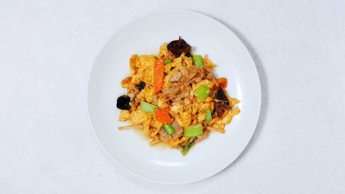 豚肉と卵を炒めた中華料理。