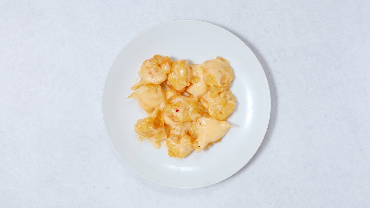 エビをマヨネーズソースで炒めた料理。