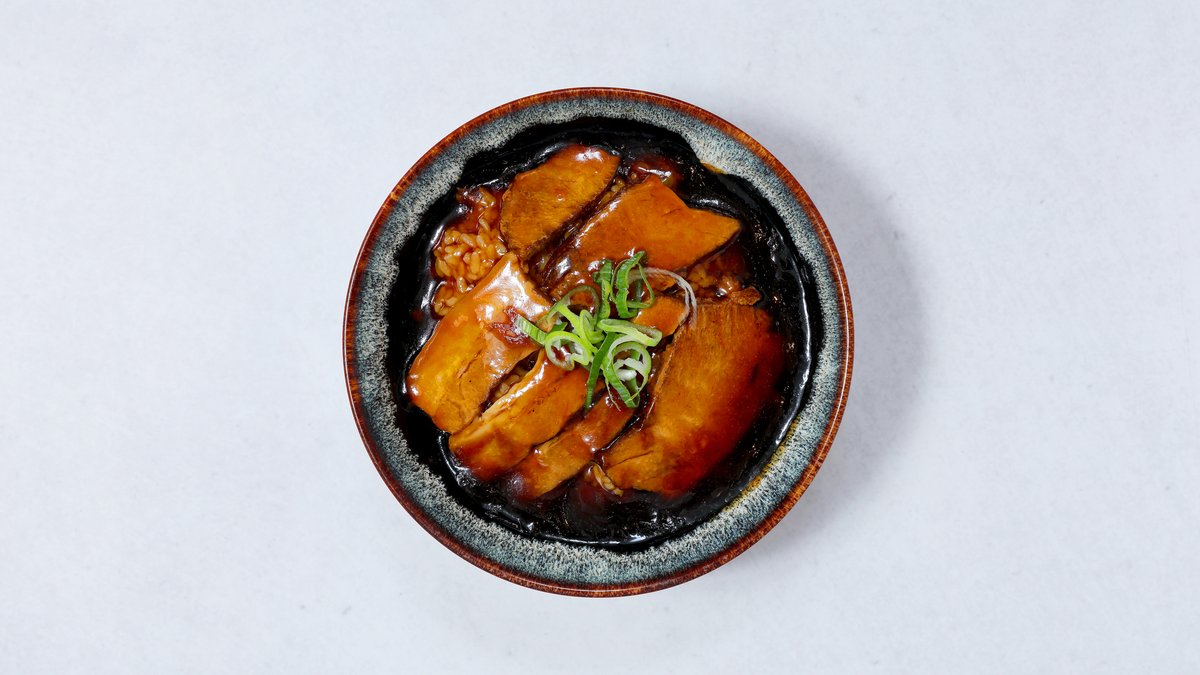 焼き豚を丼に乗せた料理。