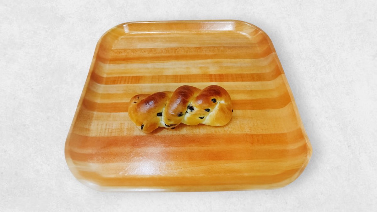 ふわふわ食パン生地にラムレーズンをたっぷり練り込みました。