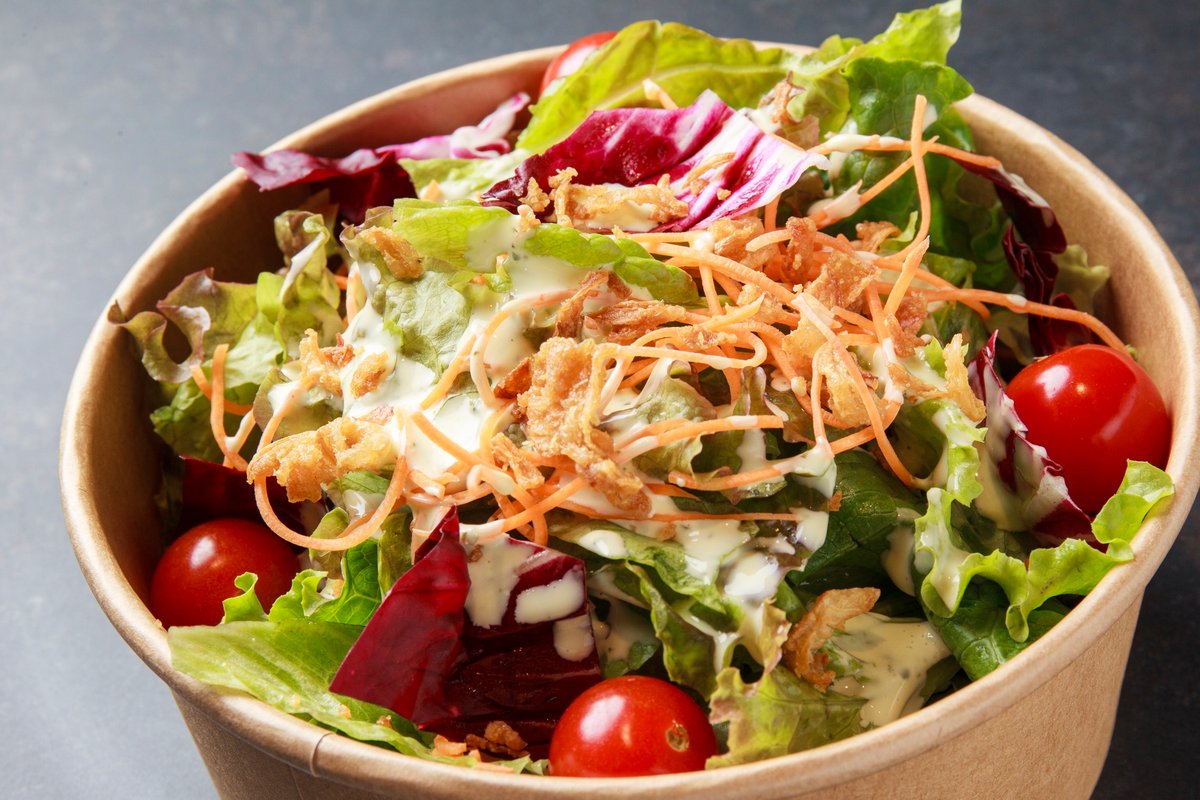 ロメインレタスとクルトン、ドレッシングでいただく定番サラダです。