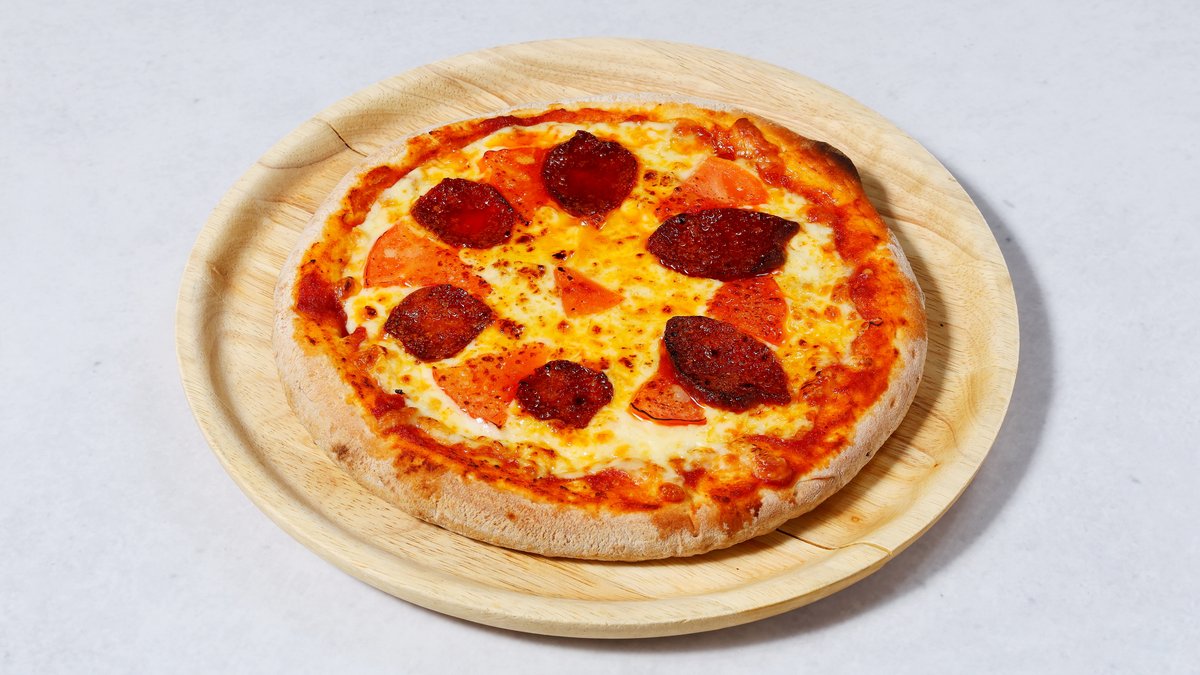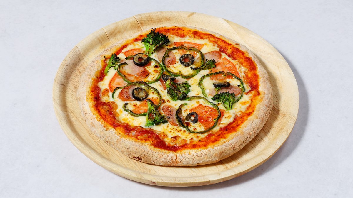 きのこやハムなど、いろいろな具材が楽しめる気まぐれピッツァです。