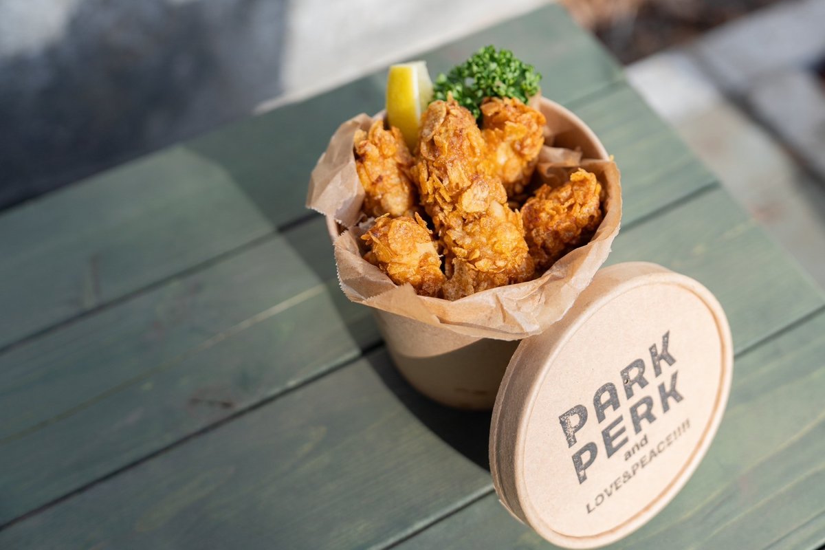ソーセージ・目玉焼き・ほうれん草 パーク特製ソースがやみつきの看板メニューです。
