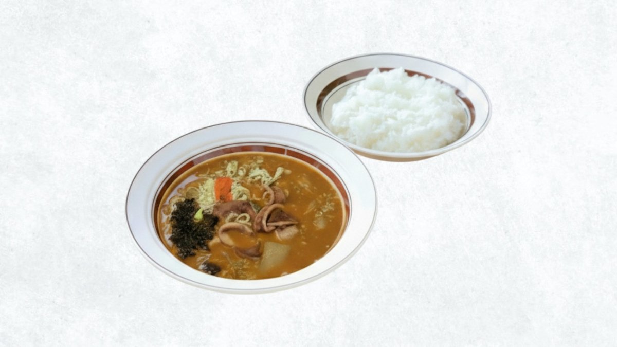 出汁の旨みがじんわり染みるスープに、とろけるチーズと香ばしいしめじ。 仕上げの黒磯海苔が旨みを一段引き上げる“和×洋スープカレー”。 大盛りライス&ザク旨ジャンギ2個で、香り・食感・満足感すべてがワンランク上に。