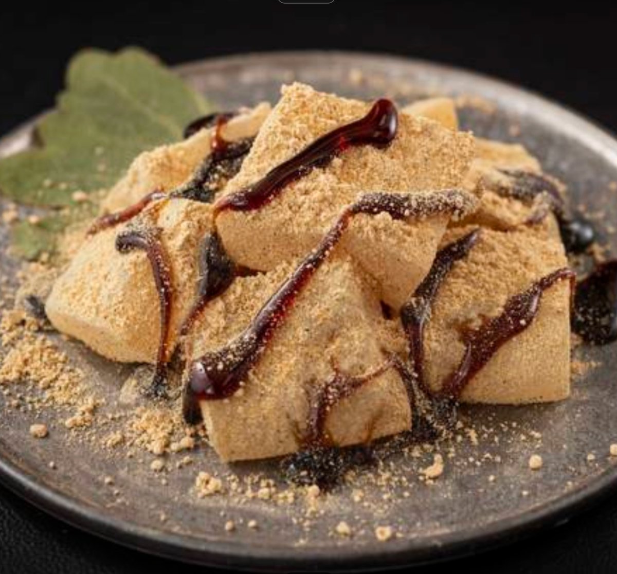 豚亭甘味のわらびもちです。黒蜜きなこ風味です。 Tontei's dessert warabi mochi. Kuromitsu kinako flavor.