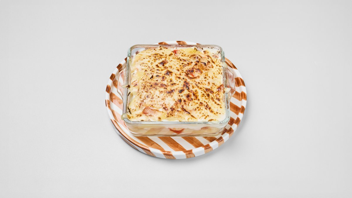 ホクホクのじゃがいもに、濃厚ホワイトソースとチーズをたっぷり重ねて焼き上げました。熱々の美味しさが口いっぱいに広がります。