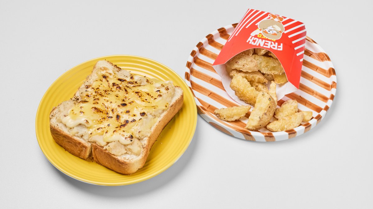 香ばしいトーストと、マッシュポテト&とろけるチーズが絶妙なじゃがチーズトーストに、ホクホクのフライドポテトが付いたセットです。