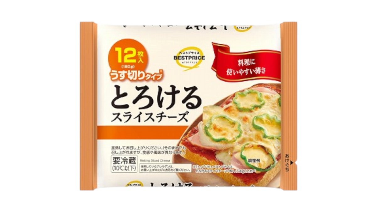 トップバリュ ベストプライス とろけるスライスチーズ うす切りタイプ 180g(12枚入)
