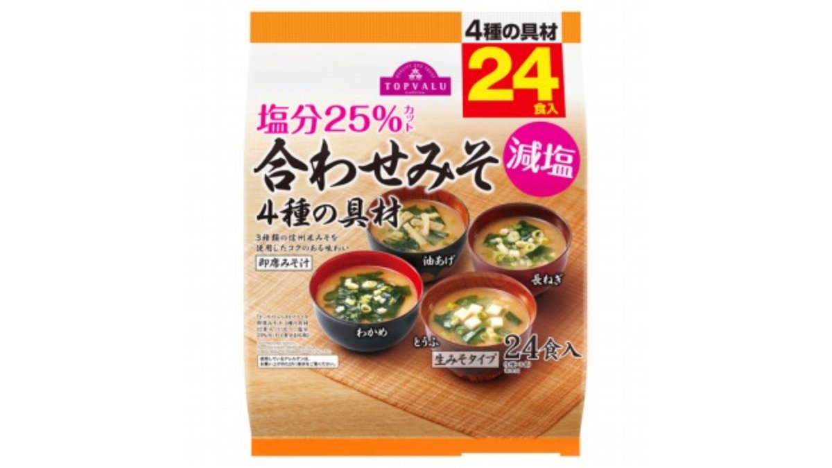 トップバリュ 減塩塩分25%カット 合わせみそ 4種の具材 24食入