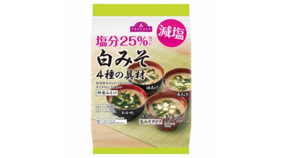 トップバリュ 減塩塩分25%カット 白みそ 4種の具材 12食入