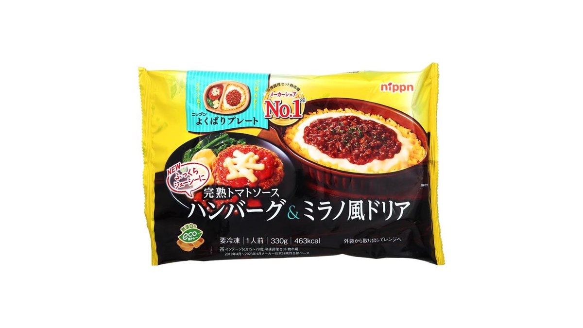 【保冷袋入】よくばりプレート 完熟トマトソースハンバーグ&ミラノ風ドリア(330g)