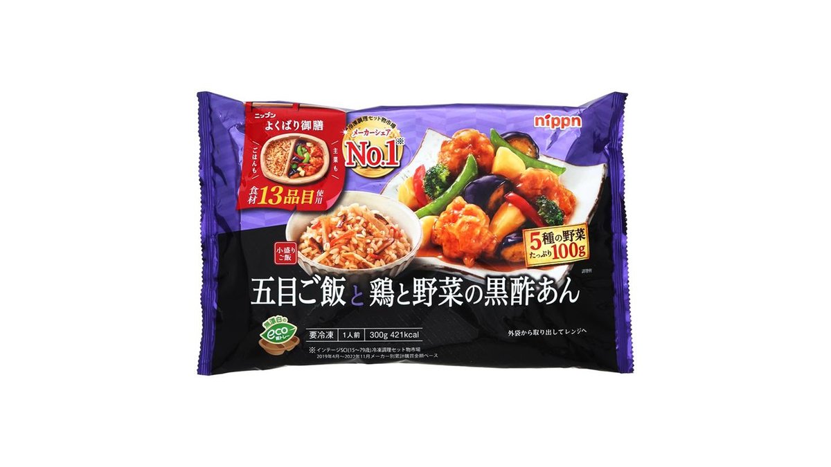 【保冷袋入】五目ご飯と鶏と野菜の黒酢あん(300g)