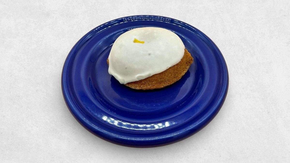 レモンシロップを含ませた甘酸っぱい爽やかバターケーキ。ホワイトチョコをとかしたグラス(糖衣)でリッチに仕上げています。