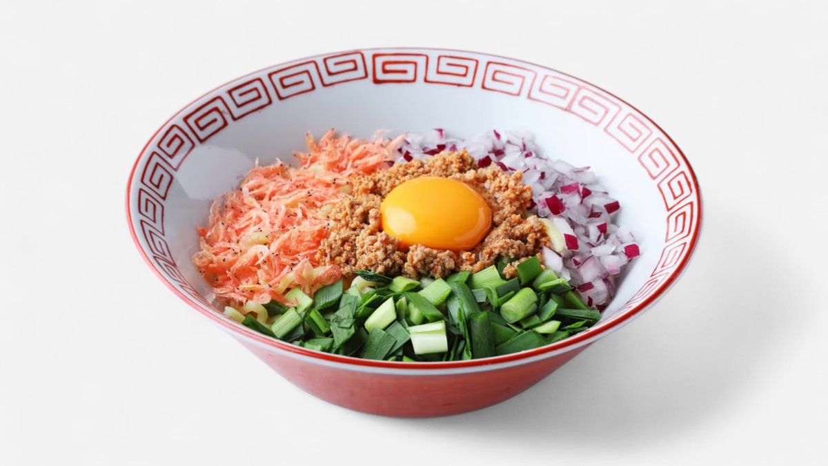 国内でも有数の製麺所と共同開発した、もちもちとした食感と小麦の香りを追求した特製麺を使用。付属のお酢、ラー油をかけてよく混ぜてお召し上がりください ※デリバリーでは「並盛」「大盛」は無料でお選びいただけます。「倍盛」は容器・配送の都合により+120円を頂戴しております。ご了承ください。