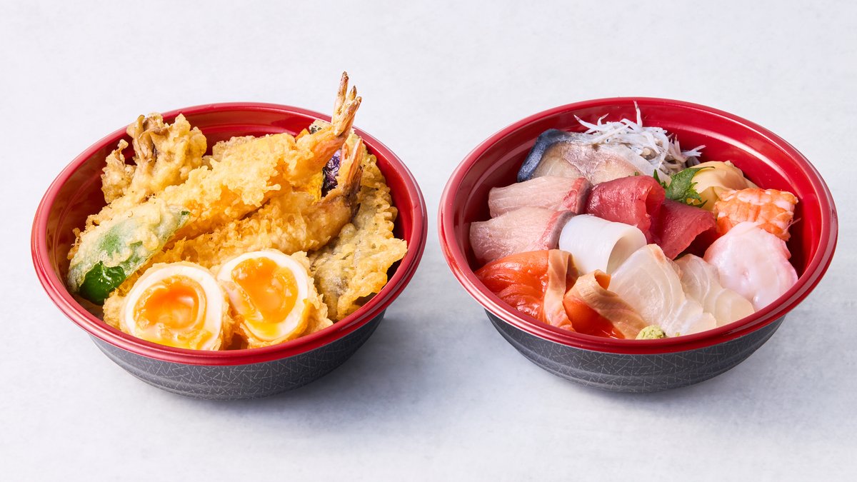 サクサクの衣で揚げられた天ぷらが、ご飯の上にトッピングされた、揚げたての美味しい丼物です。※写真はセットのイメージです。
