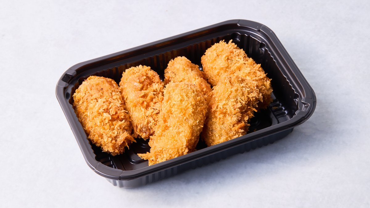 外はカリッと中はカキエキスがたっぷりジューシーな大粒カキフライです。広島産1個45g。※写真はイメージです。