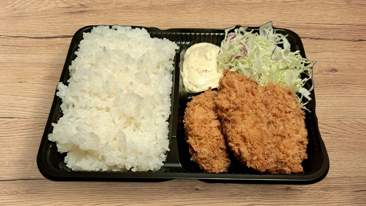 ジューシーでボリューミーなタルタル、ふりかけ付きお弁当です♪