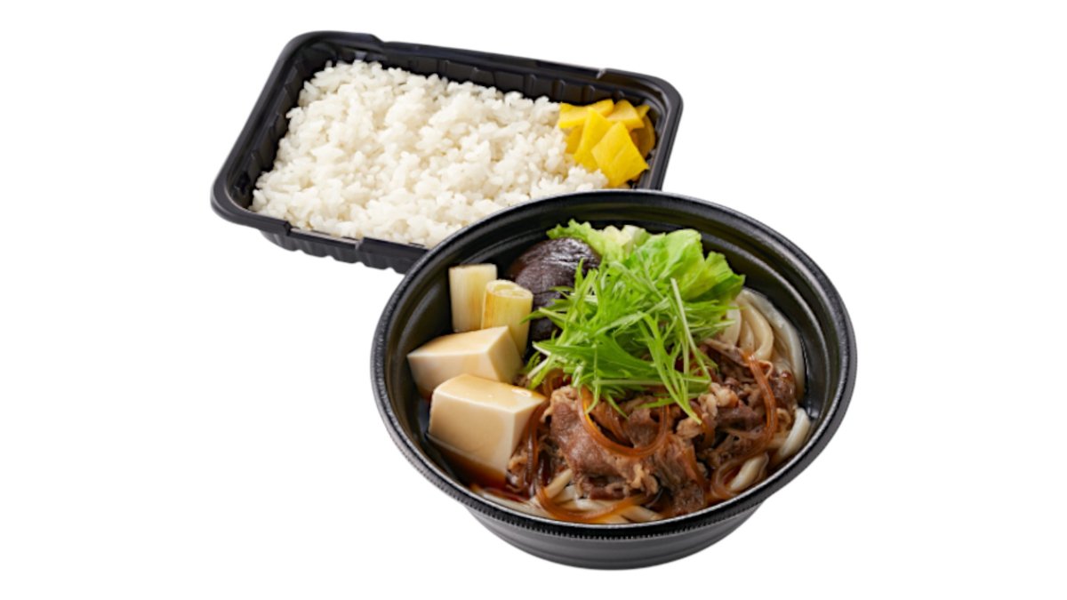 牛肉の量が通常の2倍!牛の旨味と特製割下がしみるすき焼きをお楽しみください。(うどん麺入り)