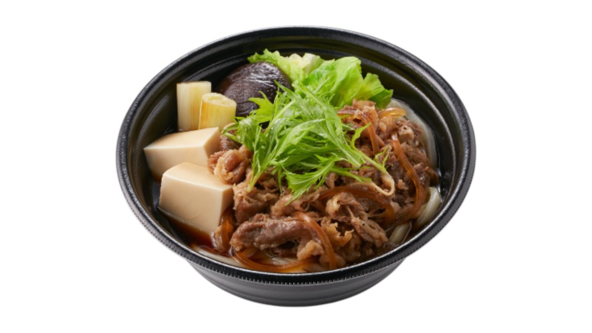 牛の旨味と特製割下がしみるすき焼きをお楽しみください。(うどん麺入り)