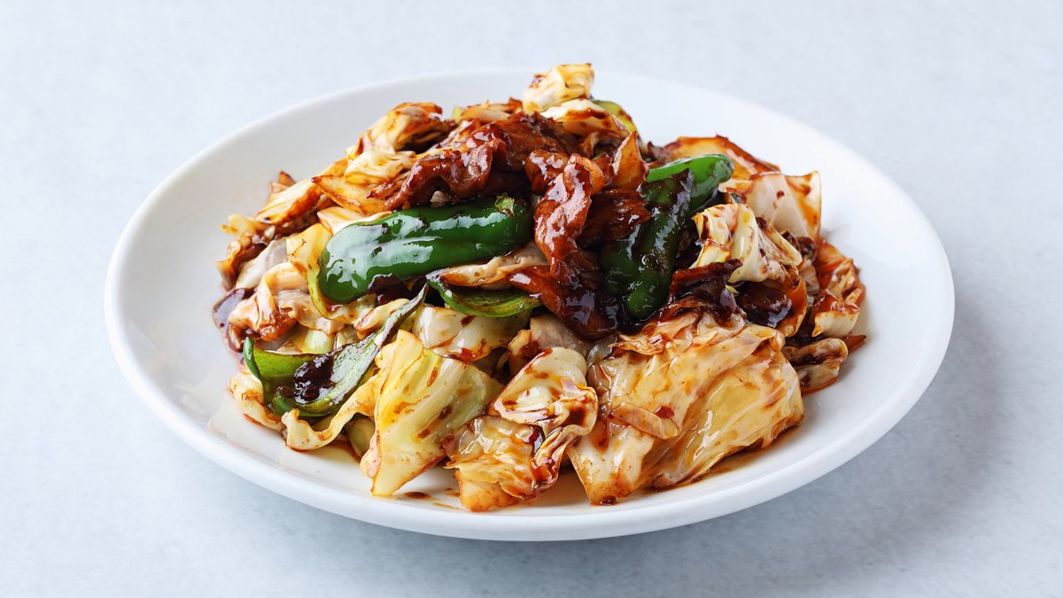 柔らかい豚肉とキャベツを甘辛い味噌ソースで炒めた回鍋肉です。