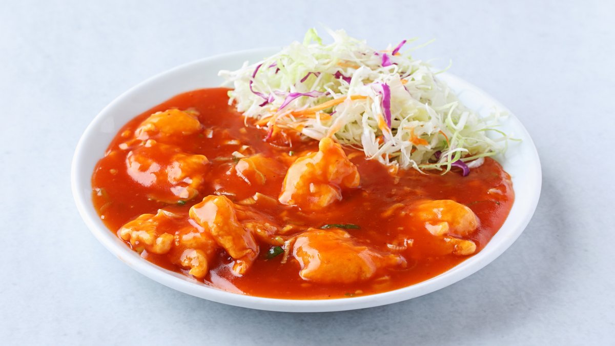 香ばしく揚げた鶏肉にさっぱりとした特製ソースをかけた油淋鶏です。