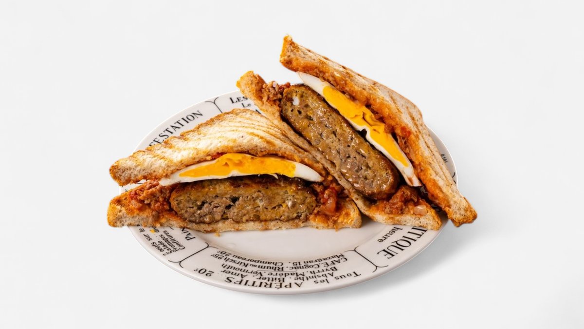 こだわりの溶岩ソースとベーコンエッグのホットサンドです。