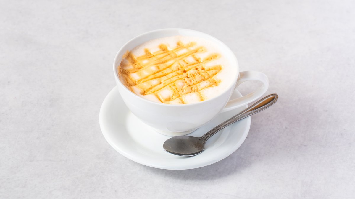 キャラメルの甘さと香ばしさが魅力のラテです。 A latte with the charm of caramel sweetness and fragrance.