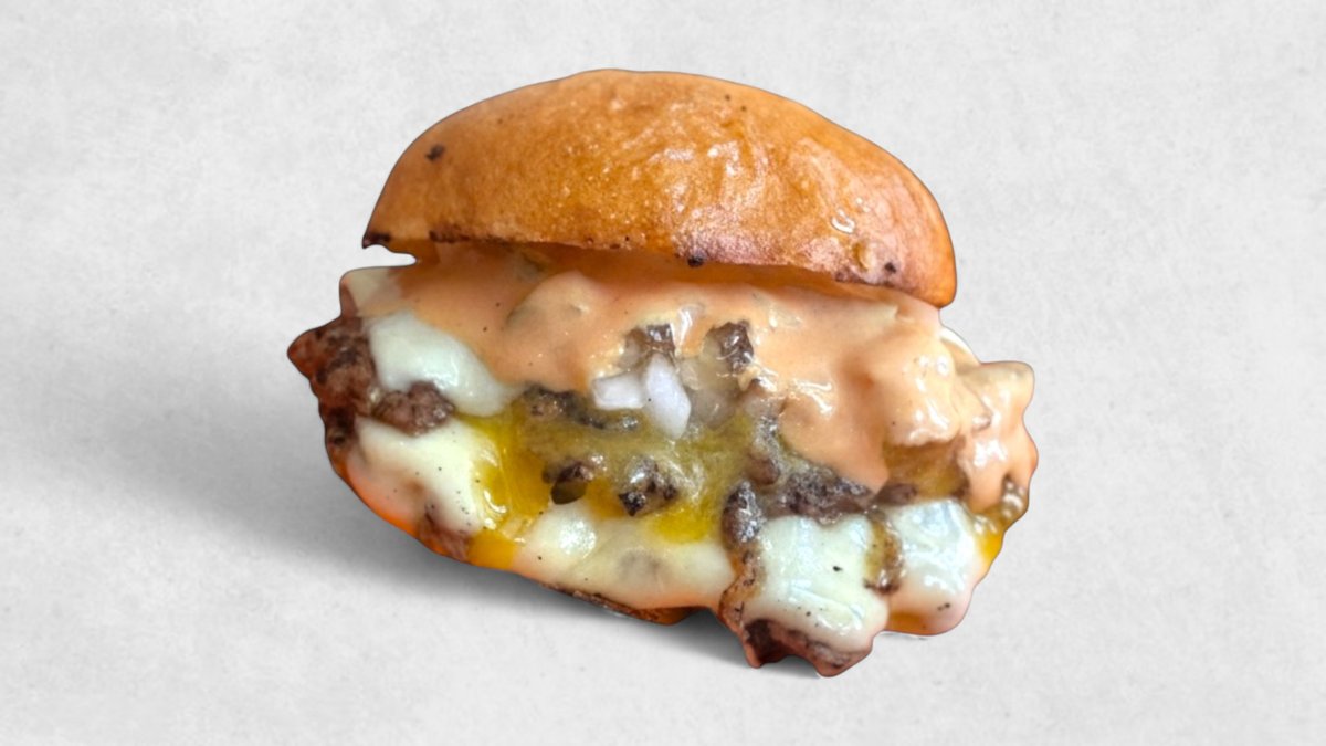 8cmほどのスライダーバーガー。 手乗りサイズのバーガー、中身は本格的。 是非お試しくださいませ!