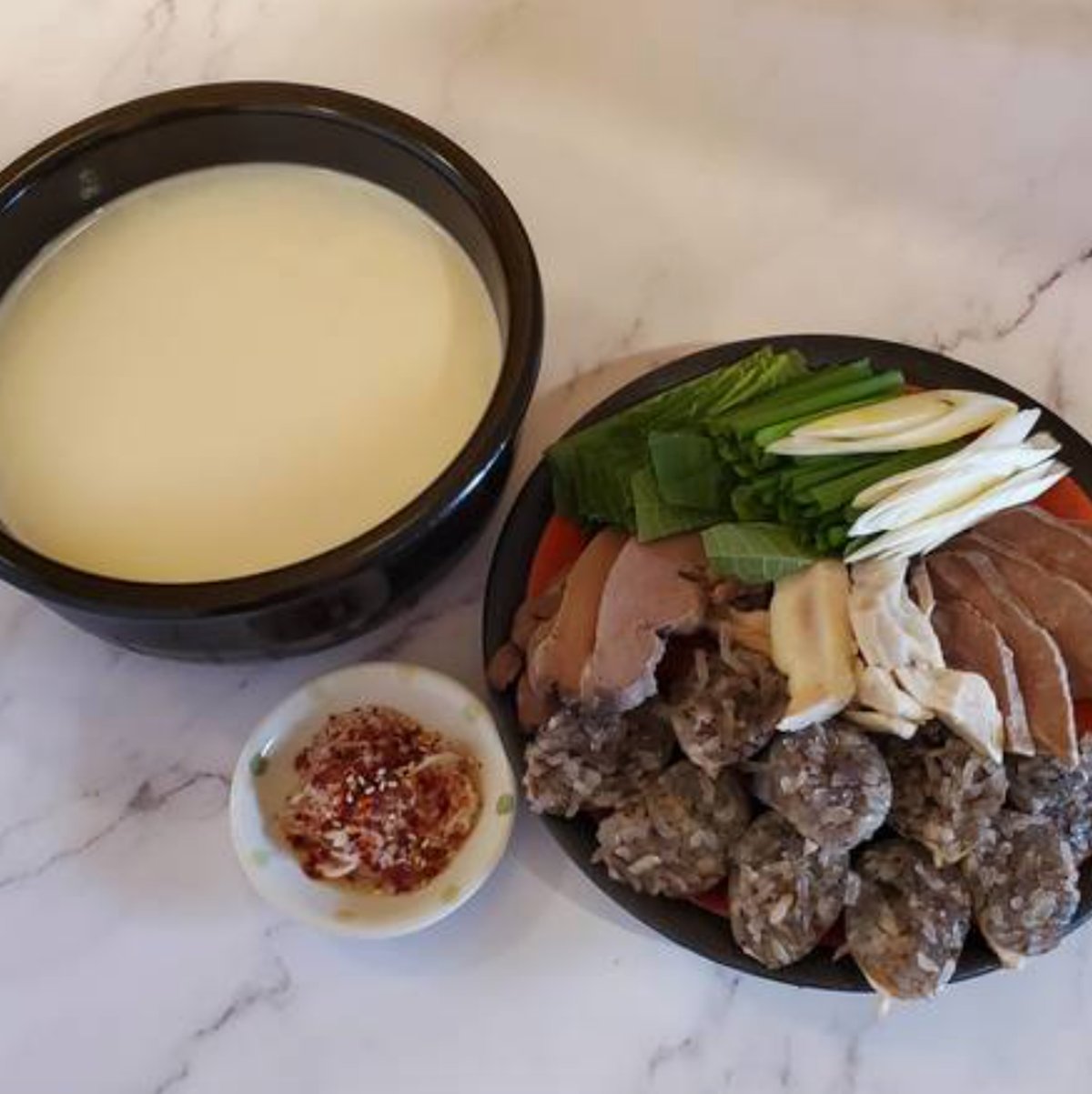 韓国の豚足料理。コラーゲンたっぷり (サンチュセット付き)!