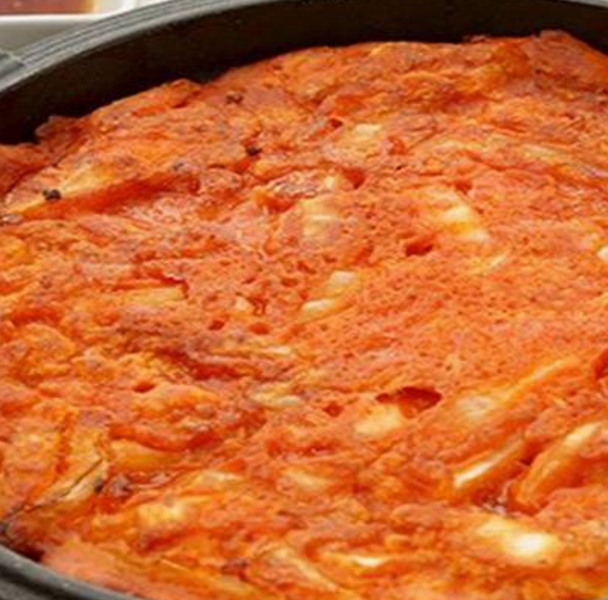 海鮮がたっぷりの香ばしいサクサクチヂミにチーズを加えました。