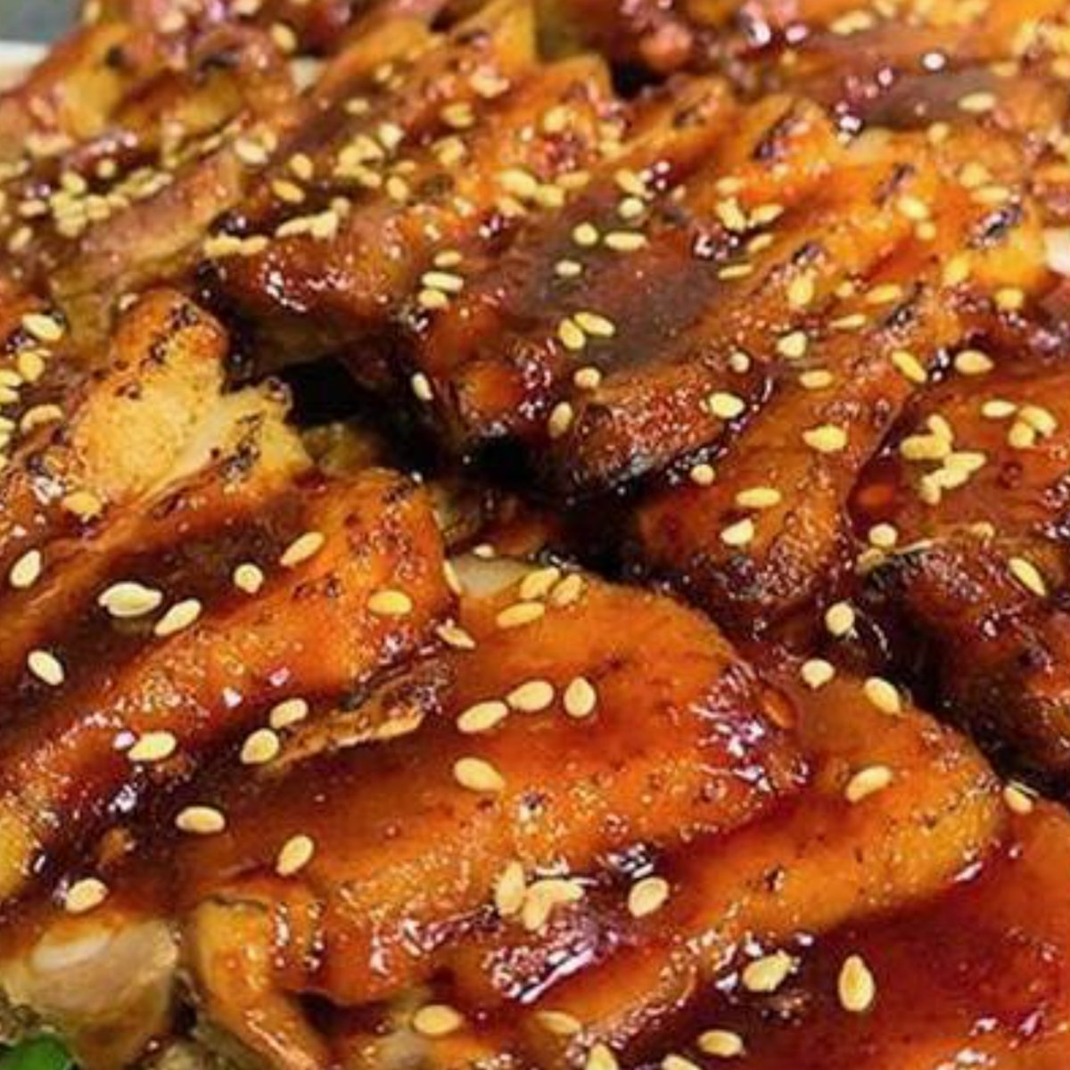 骨なしのフライドチキンに甘辛タレを絡めた一品。700gのサイズも選択可能です。