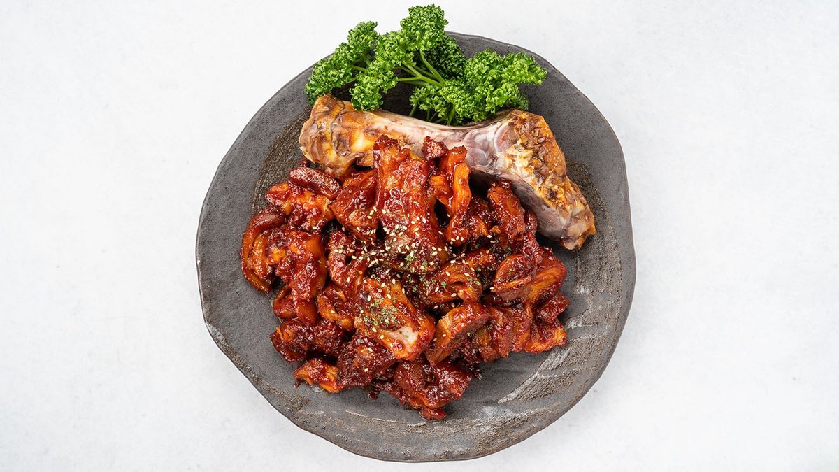 骨なしのフライドチキンに激辛タレを絡めた一品。700gのサイズも選択可能です。