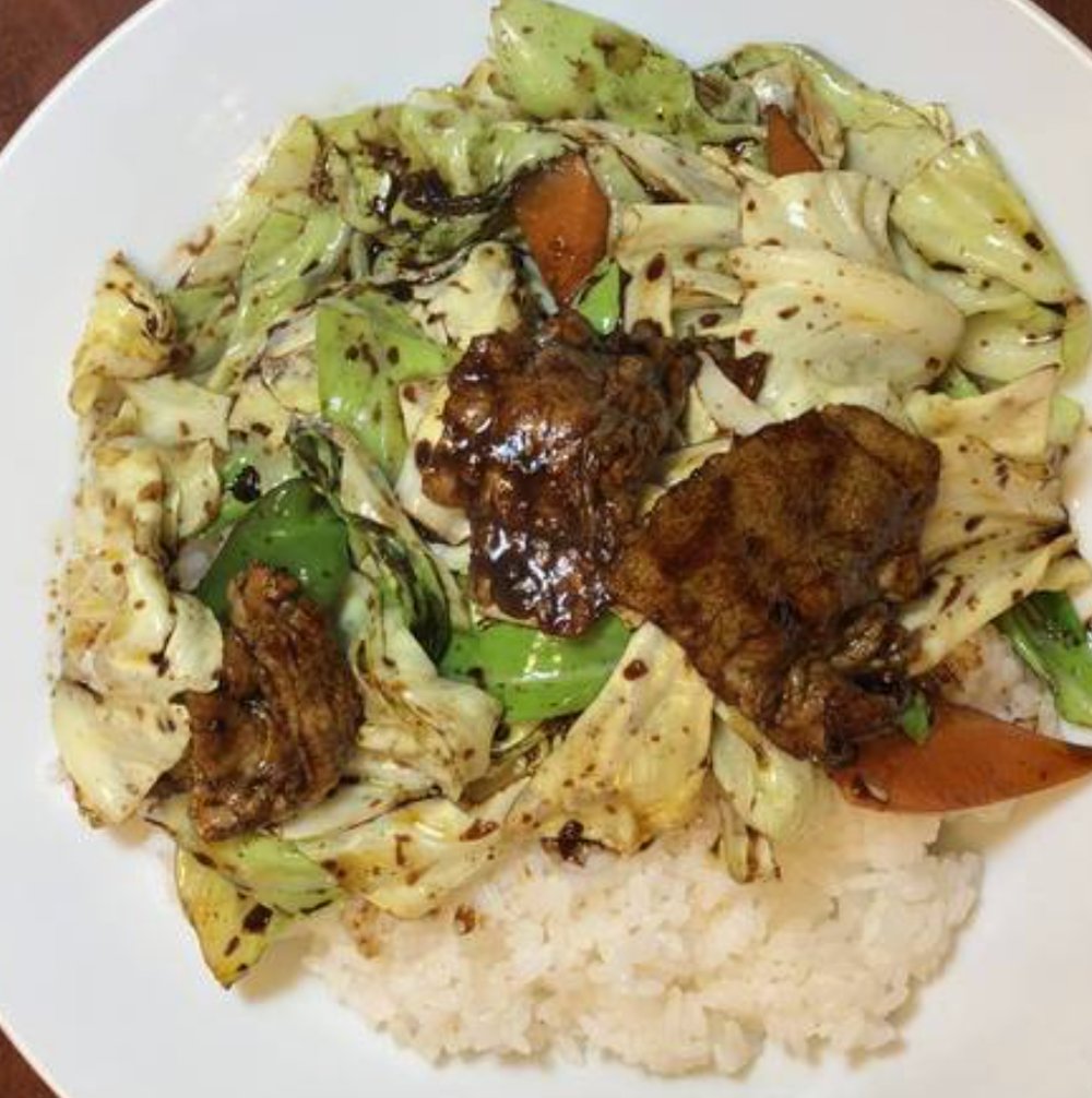 美味しく焼き上げたホイコーローをご飯の上にたっぷり乗せてお楽しみください。