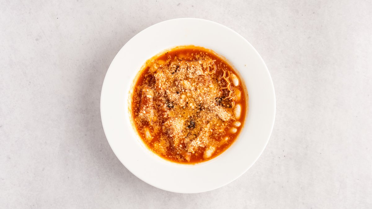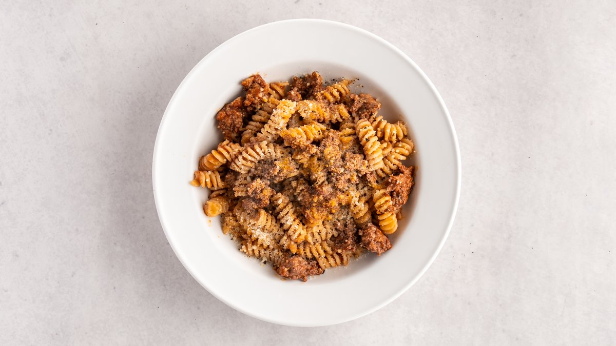 お肉と香味野菜をじっくり煮込んだトマトソースのパスタ。