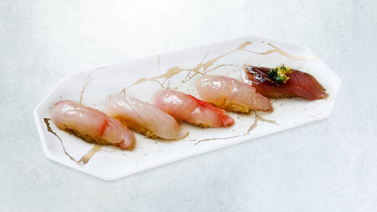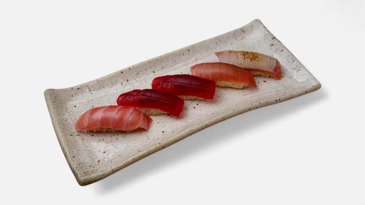 「南まぐろ」の異なる部位を一度に楽しめる、贅沢な五貫セットです。