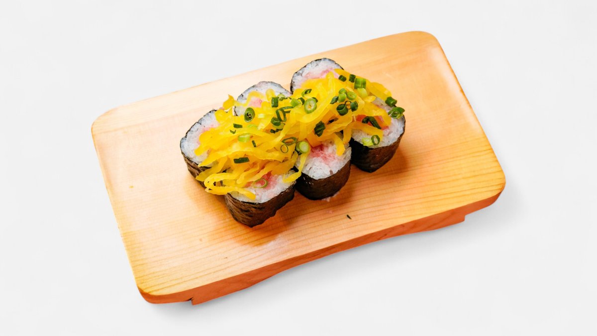 脂ののった本まぐろ中トロを贅沢に使用した巻き寿司。 とろけるような旨みが口いっぱいに広がります。