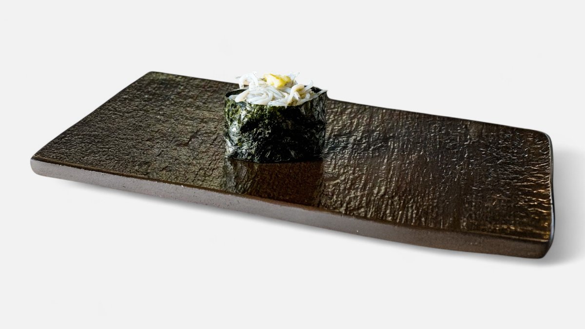 釜揚げしたしらすのやさしい旨みと、ほのかな塩味が楽しめる一貫。 さっぱりとした味わいで、どなたにも好まれます。