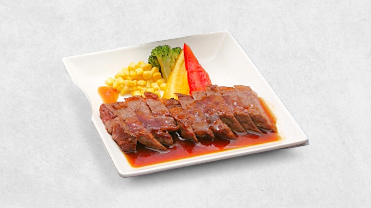 香ばしく焼き上げた国産牛のステーキです。ジューシーな肉汁が広がり、特製ソースがさらに旨味を引き立てる一皿です。