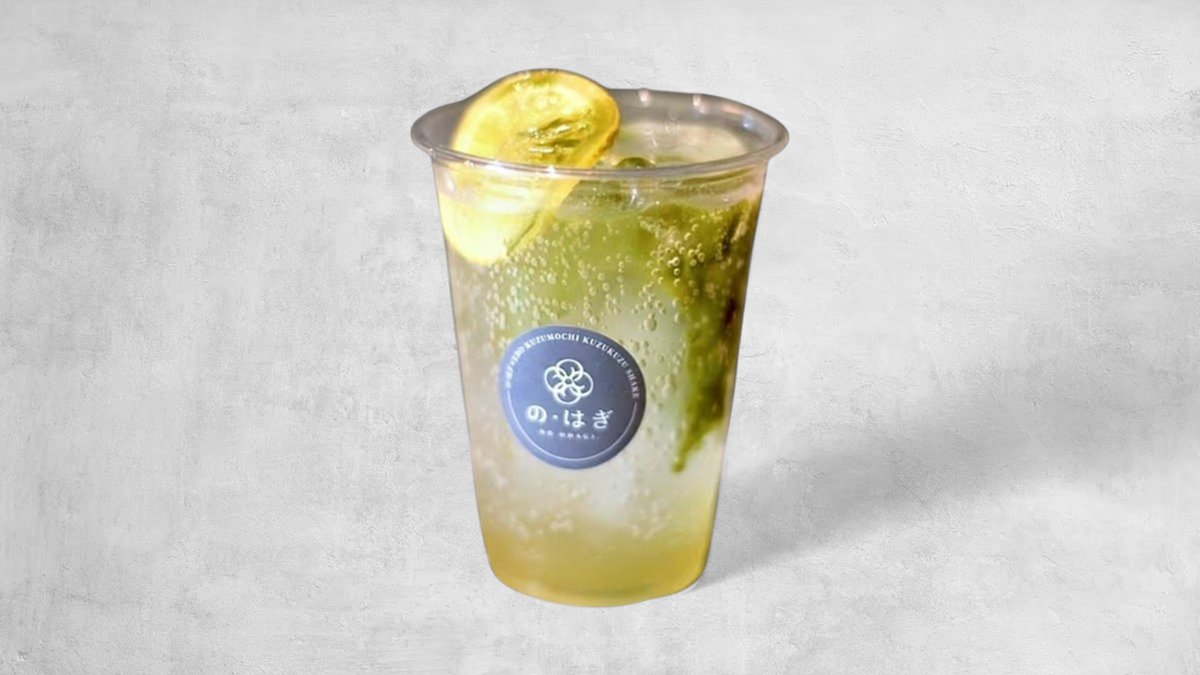 手作りレモネードソーダの上からオーガニックのお抹茶を流し込んだ、爽やかながら抹茶の風味も味わえる!この時期にぴったりの一杯です。もちろん、白砂糖/添加物不使用!