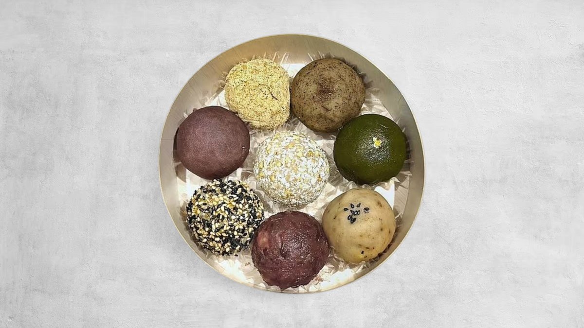食品添加物・白砂糖不使用!店内で手作り!白ごまと黒ごまに醤油を混ぜ、もち米にはきび、粒あんをを混ぜておりビタミン、食物繊維も豊富!