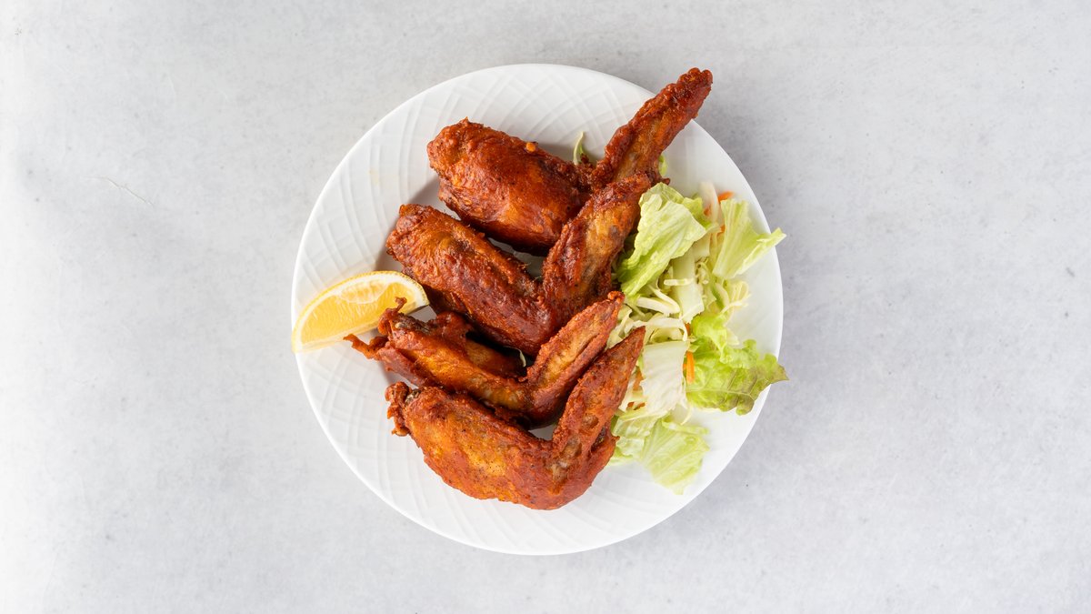 定番の手羽先を独自の味付けで揚げたり焼いたりしました。ジューシーで食べ応えのある一品です。/ Classic chicken wings fried or grilled with our unique seasoning. A juicy and satisfying dish to enjoy.