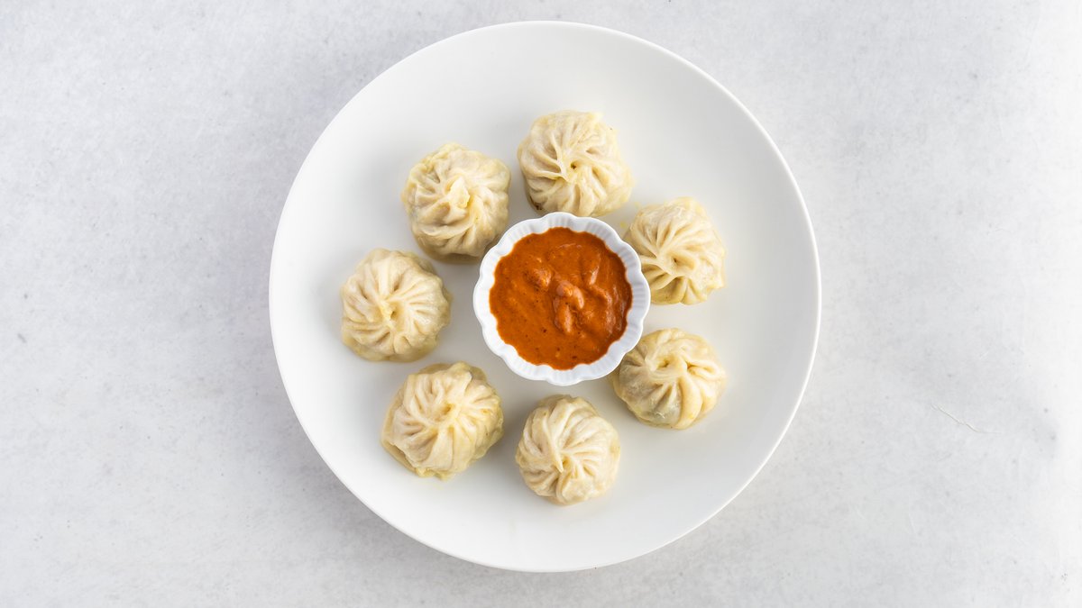 餃子のような形に包んだ具材を蒸し、特製の辛いソースでいただくネパール料理です。熱々をお召し上がりください。/ A Nepalese dish of steamed dumplings served with a special spicy sauce. Please enjoy this piping hot delicacy.
