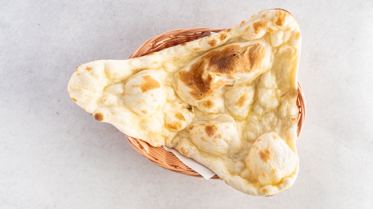 生地を窯で香ばしく焼き上げた、シンプルな味わいのインドのパンです。どんなカレーにもよく合います。/ A simple-tasting Indian flatbread baked fragrantly in a clay oven. It complements any type of curry well.