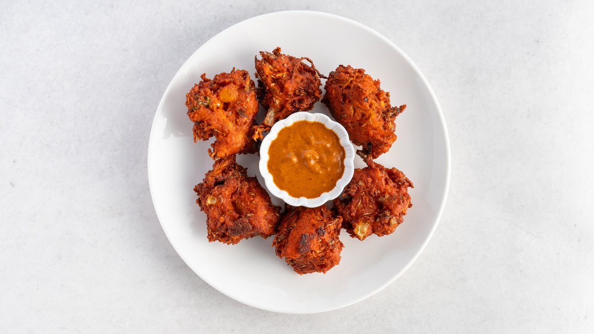 様々な野菜や具材をスパイス入りの衣で揚げたインドの天ぷらです。おつまみや副菜として広く親しまれています。/ Indian tempura made by frying various vegetables and ingredients in a spiced batter. It is widely popular as a side dish or snack.