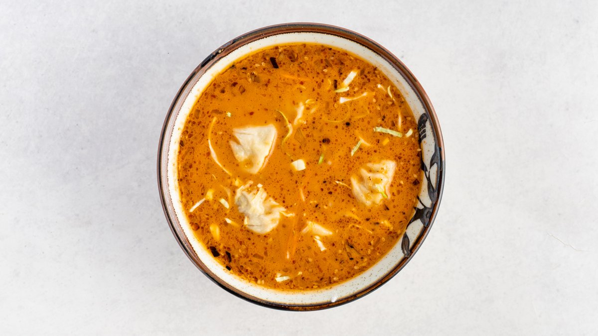 餃子のようなモモを特製スープに浸した、ネパールの温かい料理です。寒い日に特におすすめいたします。/ A warm Nepalese dish of momo (dumplings) submerged in a special soup. Highly recommended especially on cold days.
