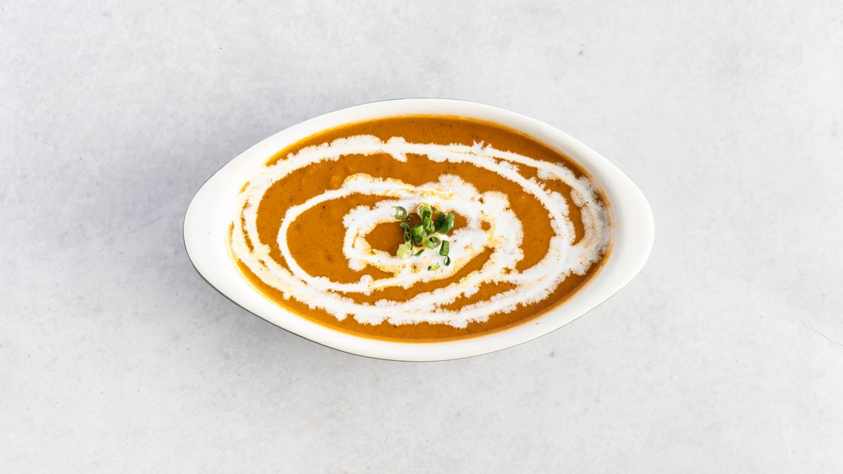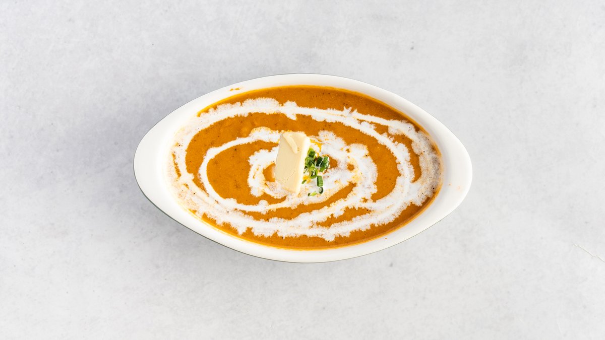 トマトとバター、生クリームを使った、マイルドでクリーミーな味わいが人気の定番カレーです。/ A popular classic curry known for its mild and creamy flavor, made with tomato, butter, and fresh cream.