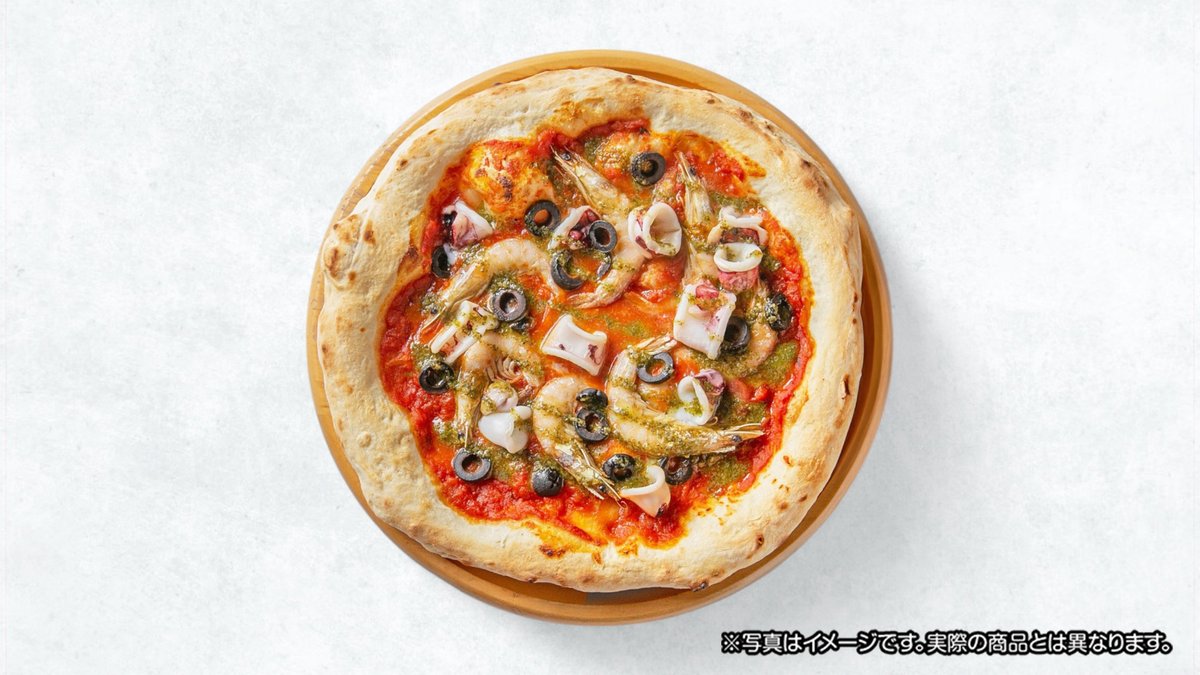 見た目も、味も華やかなピザ。ソースにも魚介だしがしっかり入っています。 (モッツアレラチーズ、ムール貝、あさり、いか、海老)